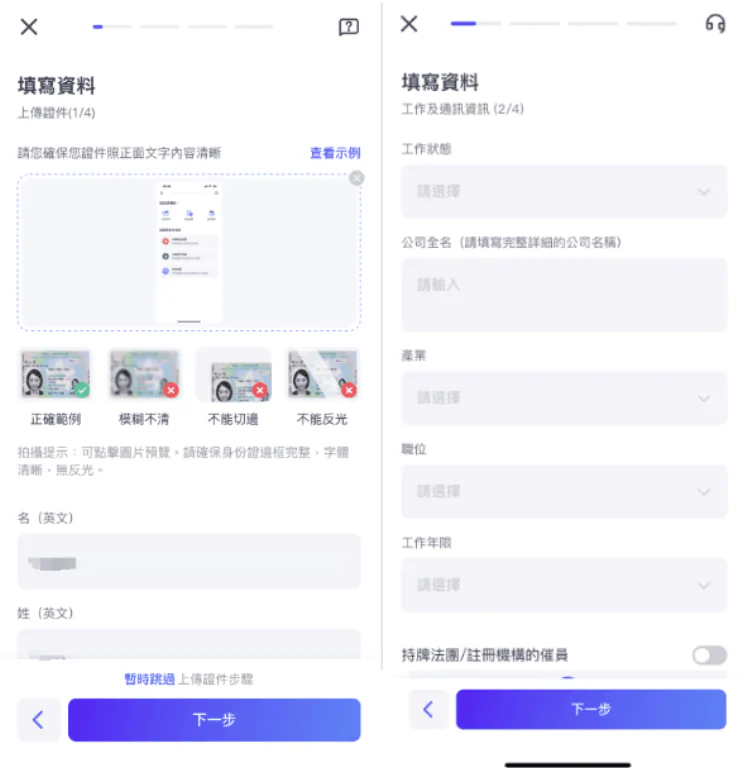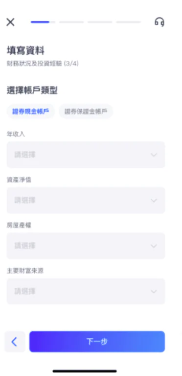 填寫財務狀況和投資經驗