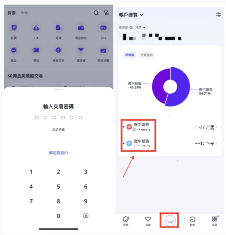 打開Webull App後輸入交易密碼,點擊Webull Logo,進入微牛證券賬戶。