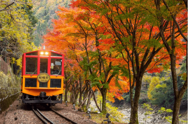 京都紅葉景點|1. 嵐山小火車
