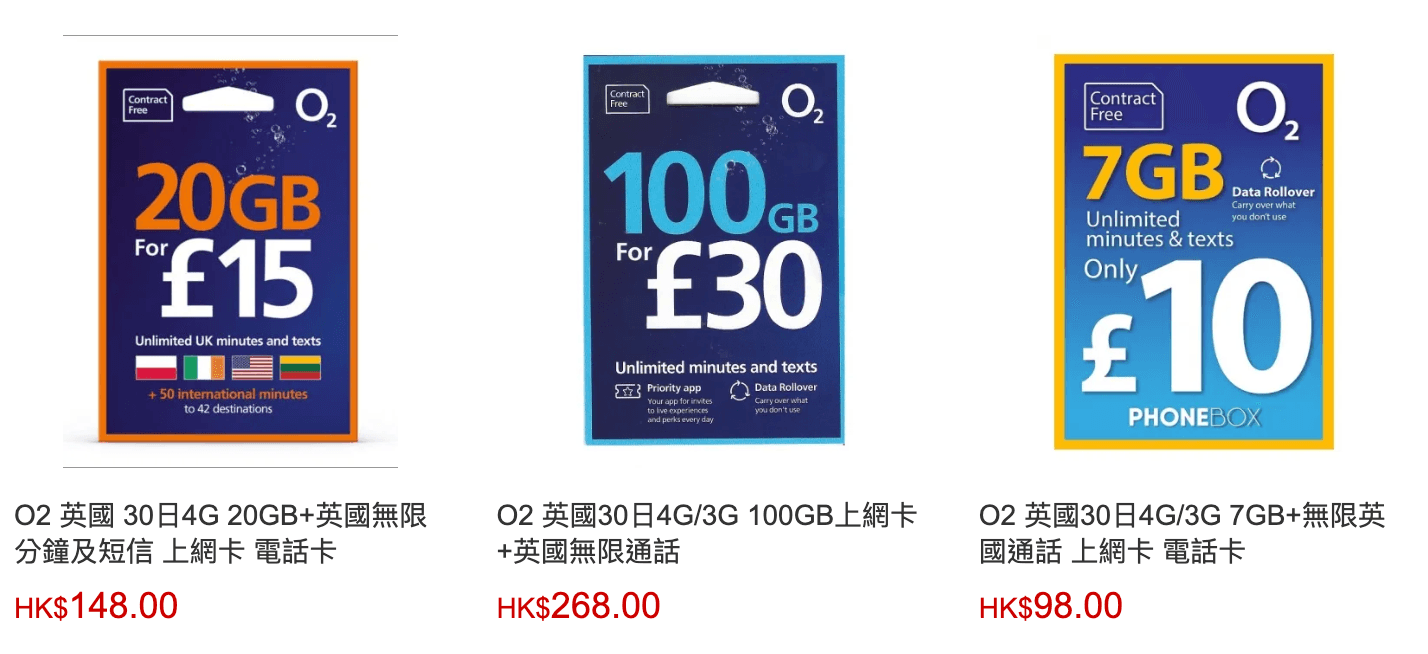 優點:價錢便宜、覆蓋範圍廣,方便跨國旅行、優惠多、可免費發送無限的短訊、英國境內撥打電話無限分鐘