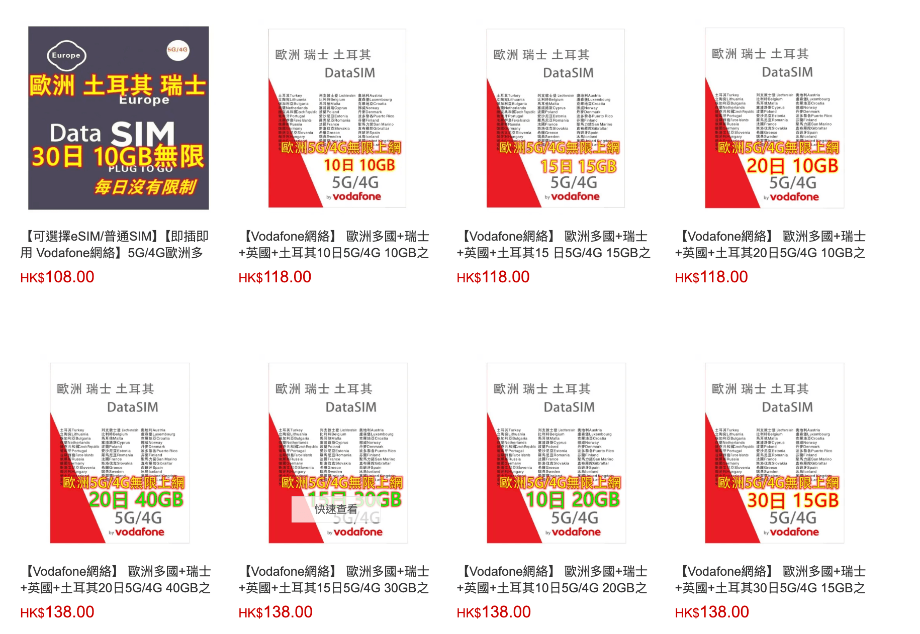 如果想遊覽歐洲多國,大家可以選擇英國電信商Vodafone的,可供在歐洲多國使用,而且有大量的流量方案可供選擇。加上Vodafone在歐洲亦是口碑較佳的通訊公司,絕對值得準備歐遊的大家考慮選購!目前官網只提供eSIM服務,實體SIM卡可於香港代理商購買。