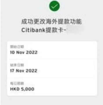 - 於Citi Mobile App開啟海外提款功能