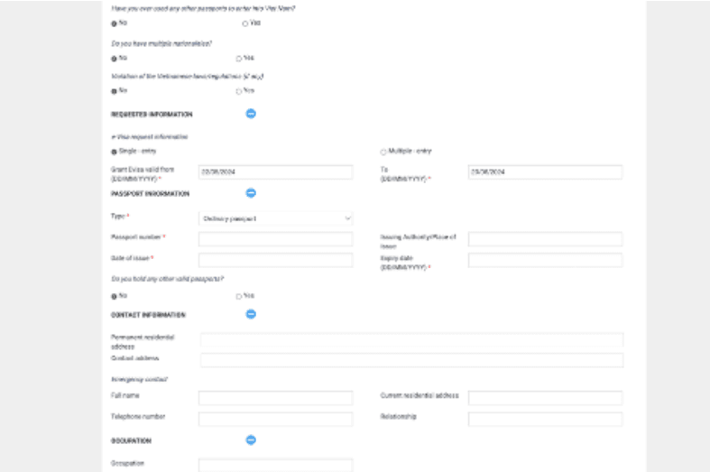 申請人需於越南移民局官方網站提交申請,上傳護照資料頁及證件相片,填寫個人資料及入境口岸等資訊,最後以信用卡付款。申請成功後會獲得一組註冊號碼,並在簽證批核後以電郵通知,列印電子簽證即可使用。
