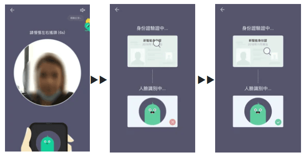 按指示用手拿著身份證,跟著屏幕上的框框移動就可以。MoneyHero 實測時發現,用新智能身份證時,系統會比較難辨認,可能要重覆此步驟幾次才會成功。身份證驗證成功後,就會進行人臉識別。
