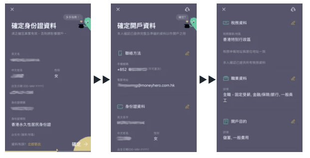 成功識別身份之後,個人資料會自動填好,再填聯絡方式、稅務資料及職業資料等。如果要交海外稅就記得要剔相關欄位。