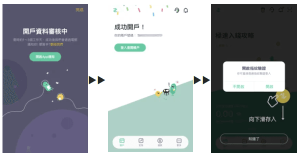 雖說要1至3日審核,但其實不用1分鐘就已經成功開戶!之後可選擇加入指紋驗證,令日後登入更方便。