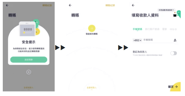 如果要轉賬將錢轉出戶口,做法亦非常簡單,首次使用設定每日限額後,就可以按「+」號輸入想轉賬戶的資料,用法與一般E-banking一樣。如想提取現金,則可以用實體扣賬卡,免費於全港所有銀行超過3,000部有Visa標示的櫃員機提取現金,同時亦支援全球近300萬部櫃員機。