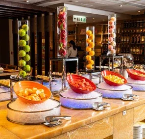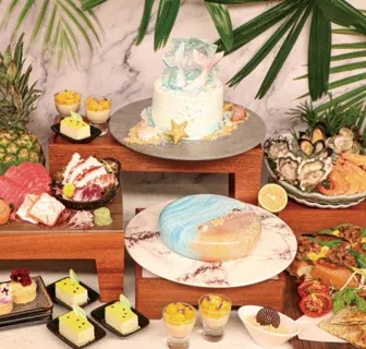在甜品方面,賓客可以享用各式KITKAT®朱古力美食,包括朱古力塔、慕絲、撻、心太軟、芝士餅和泡芙。此外,還有多達八款的Mövenpick雪糕、糖果區、朱古力噴泉搭配綿花糖,以及士多啤梨和季節水果。賓客還可自由飲用八款汽水、咖啡和紅茶,讓您盡情享受這場味覺盛宴。詳情