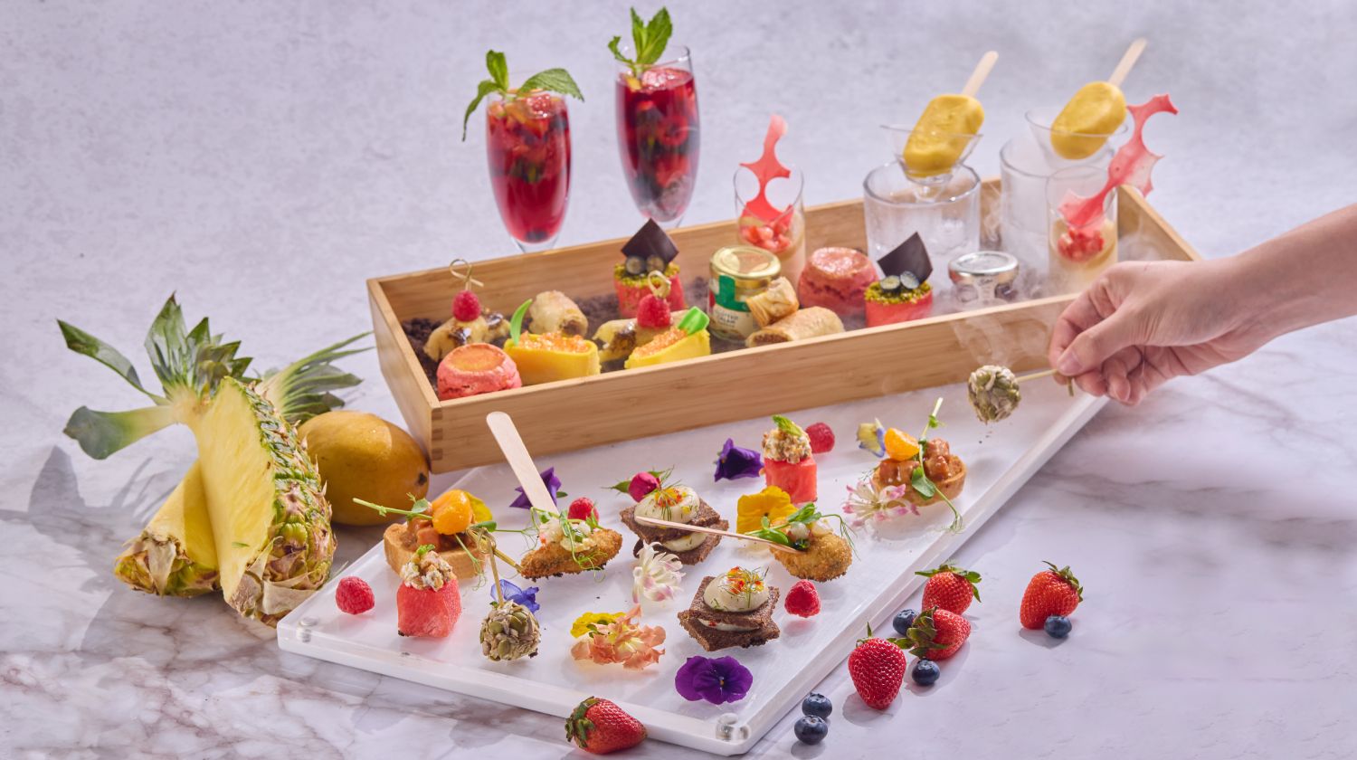 六國酒店的西餐廳Le Menu全新推出的果漾花語下午茶自助餐(節日篇),以「水果與花卉」及「芒果」為主題,由主廚精心製作了多款精緻的糕點和點心。菜單特色包括提拉米蘇蛋糕、新鮮果物配巴馬火腿、摩洛哥雜菜、芒果布甸、芒果芝士餅和芒果拿破崙。此外,賓客還可享用無限量的Häagen-Dazs雪糕,以及各種水果茶,飲品無限量供應。詳情