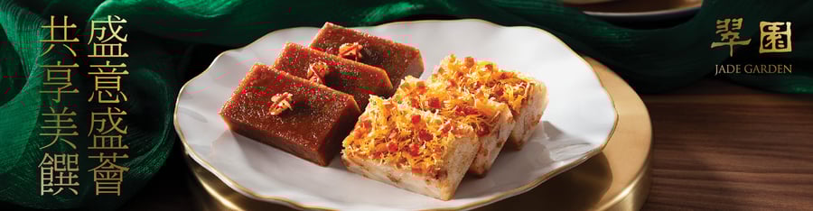 翠園年糕著重食材本質,不添加味精,推出金腿瑤柱蘿蔔糕、薑汁年糕、馬蹄糕及芋頭糕等多款賀年糕點,憑滙豐信用卡享有折扣優惠。詳情