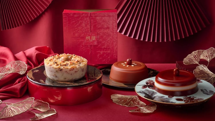 康得思酒店米芝蓮中菜館明閣於馬年推出4款糕點,包括富貴椰汁年糕、鮑魚瑤柱臘味蘿蔔糕、黑皇椰汁糕及雲南保山二百年古樹滇紅茶黑糖年糕。賀年糕點禮盒設有兩款特色設計:富貴椰汁年糕及鮑魚瑤柱臘味蘿蔔糕以花開富貴為主題的幻彩設計,而黑皇椰汁糕則採用環保紅色賀年攢盒為設計概念,享用糕點後可將禮盒轉化為精美實用的攢盒,用來盛載新年糖果及小吃。年糕由即日起至2026年1月31日可享優惠價。(詳情)