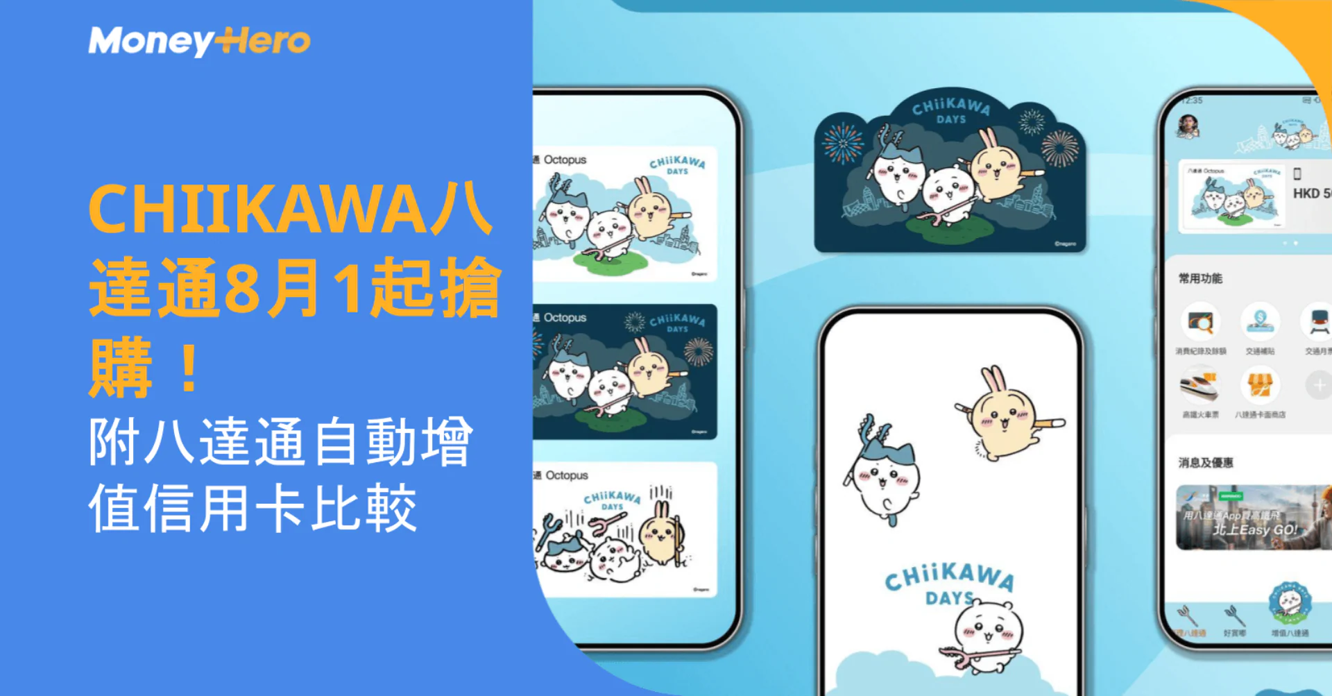 想讓你的CHIIKAWA八達通發揮最大價值?立即透過MoneyHero網上理財平台申請八達通自動增值信用卡!MoneyHero精選多款熱門信用卡,提供迎新獎賞及獨家優惠,助你輕鬆搶購CHIIKAWA限定商品並享受無憂支付體驗。