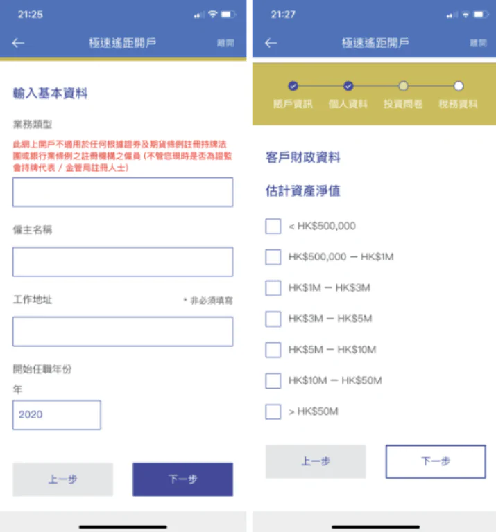 用戶可選擇以下開戶方式: