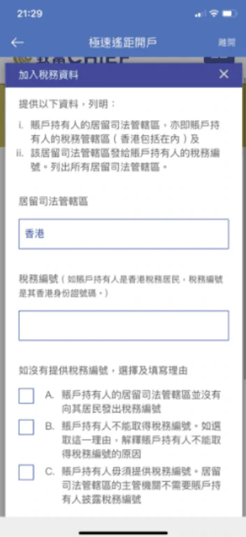 填寫所屬司法管轄區及稅務編號。
