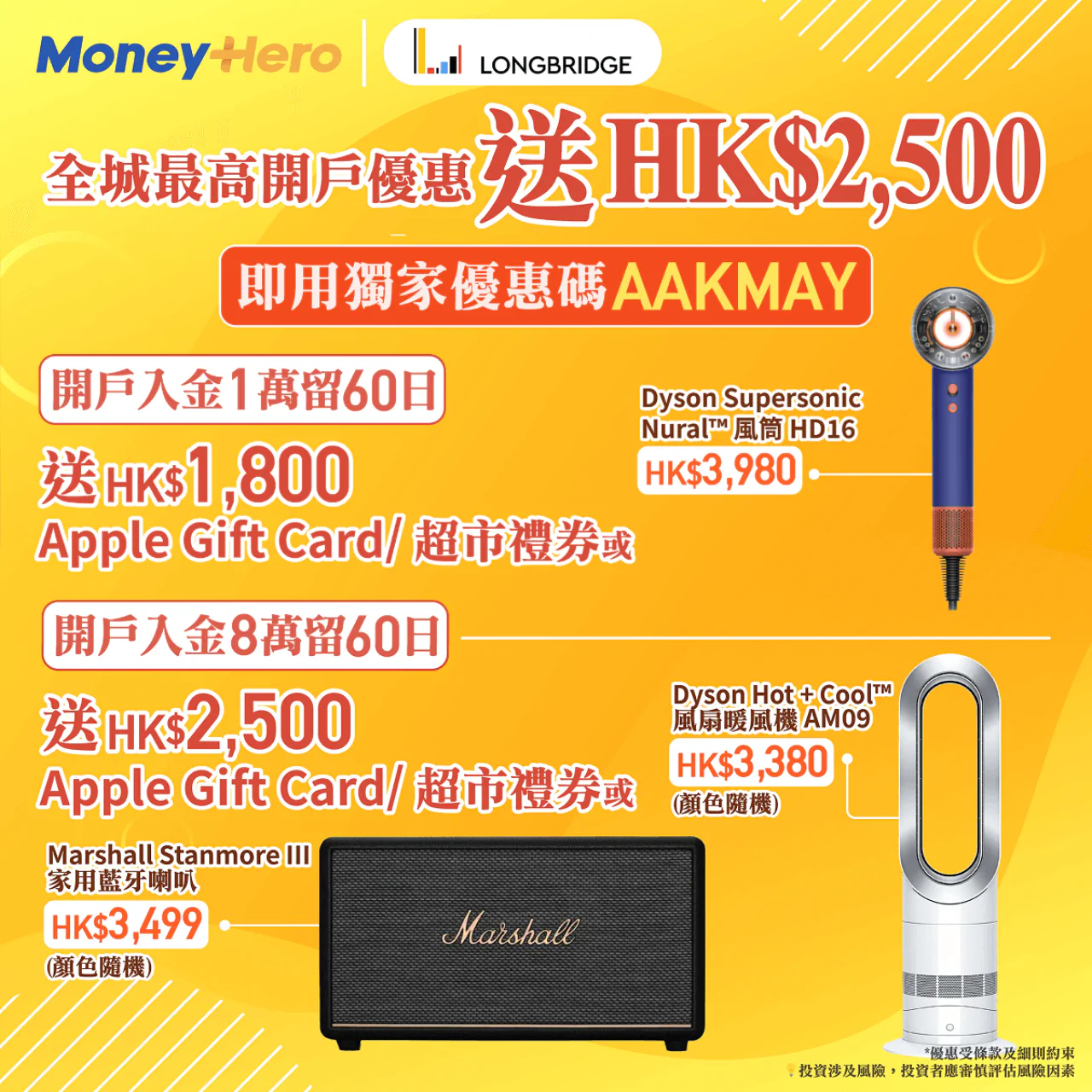 MoneyHero或本網站關於證券、投資、稅務,會計或法律意見的內容,都不會構成任何買賣投資要約、招攬、建議或意見,部分內容涉及產品或服務代言、推許或贊助。MoneyHero.com.hk之內容僅屬一般參考,並非個人化的投資建議,也不構成買賣證券的誘因。MoneyHero Global Limited及/或其分支機構不能,亦不會對任何資訊、特定投資項目之回報與可持續性,或資料來源的潛在價值,作出評估、驗證或保證其適當性、準確性或完整性。MoneyHero.com.hk可能透過本網站所提及的品牌或服務收取報酬。