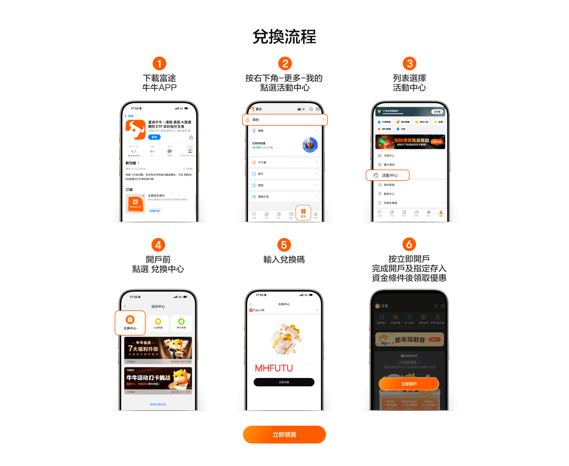 富途牛牛提供開戶優惠,包括高達HK$2,000的現金券或Apple禮品卡,需使用指定兌換碼(如MHFUTU),並存入最低HK$10,000資金且維持60天資產要求。