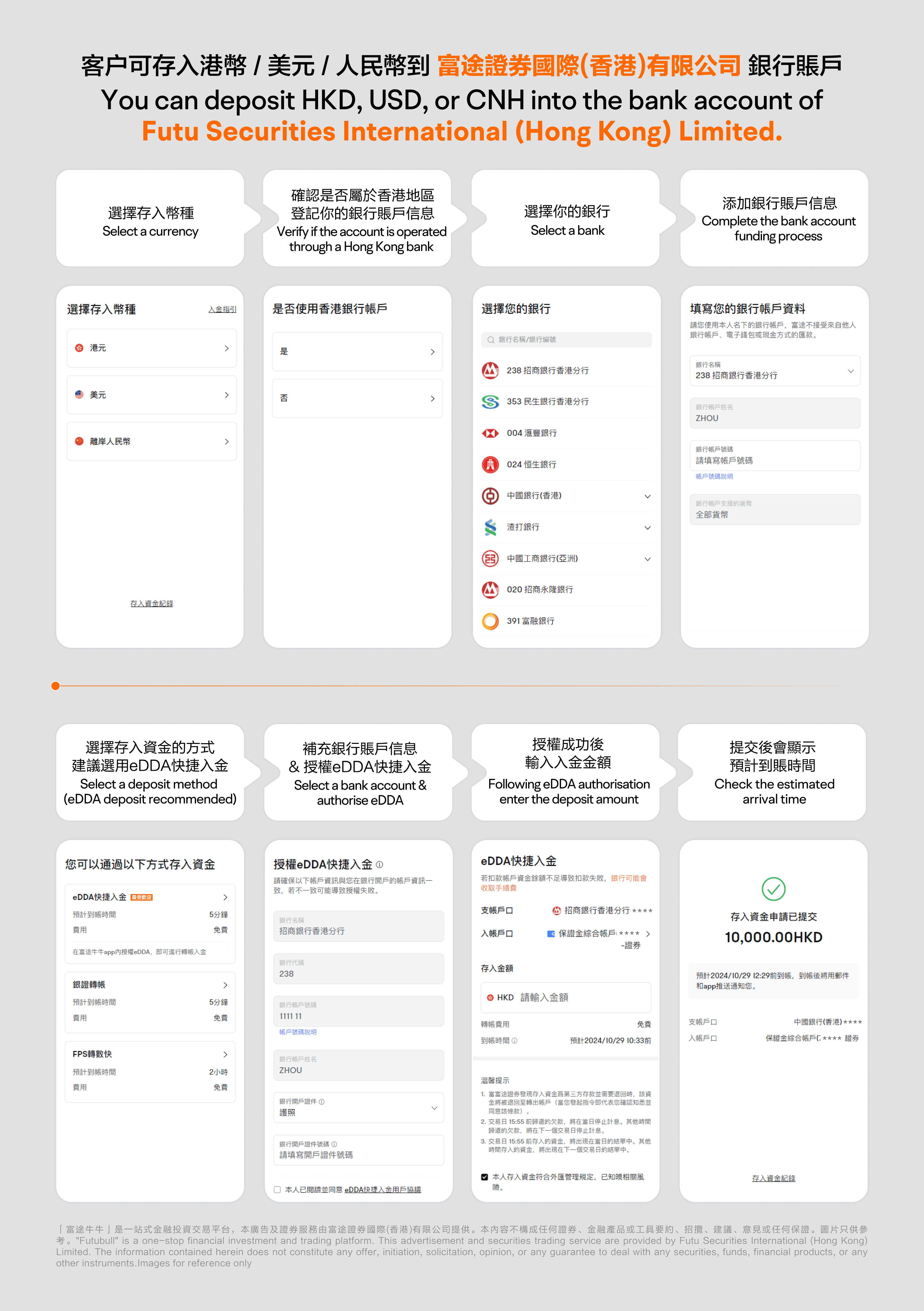 富途牛牛開戶需要提供香港身份證及三個月內的地址證明,非香港永久居民需提供護照等身份文件。開戶最低資金要求為港幣10,000元或1,500美元,需通過同名銀行賬戶轉賬完成身份驗證。