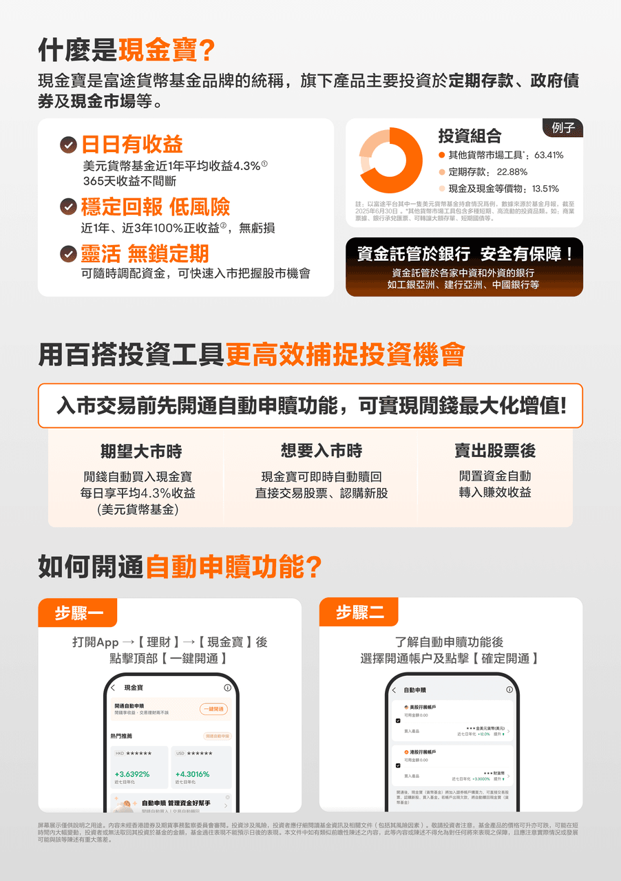 在投資產品方面,富途同樣提供多樣化選項,涵蓋股票、交易所買賣基金(ETF)及基金產品,適合追求長期增值或被動收入的投資者。同時亦支援期權與期貨交易,並提供窩輪、牛熊證與界內證等高槓桿結構性產品,迎合進階投資策略。此外,富途亦開放加密貨幣與美國國債等新興資產的投資渠道,滿足對創新與穩健收益並重的用戶需求。