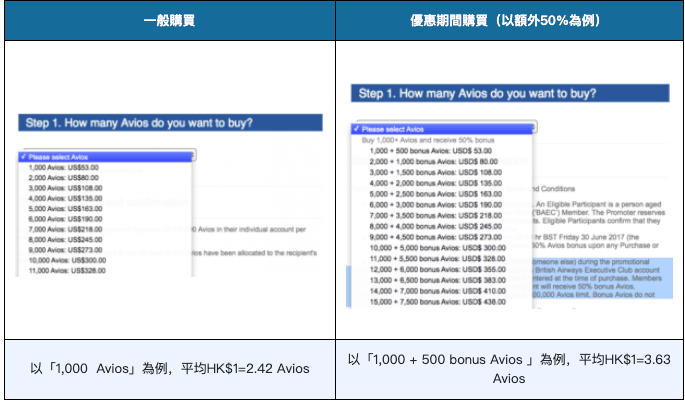 資料來源:https://www.avios.com/collect-avios/buy/subscription